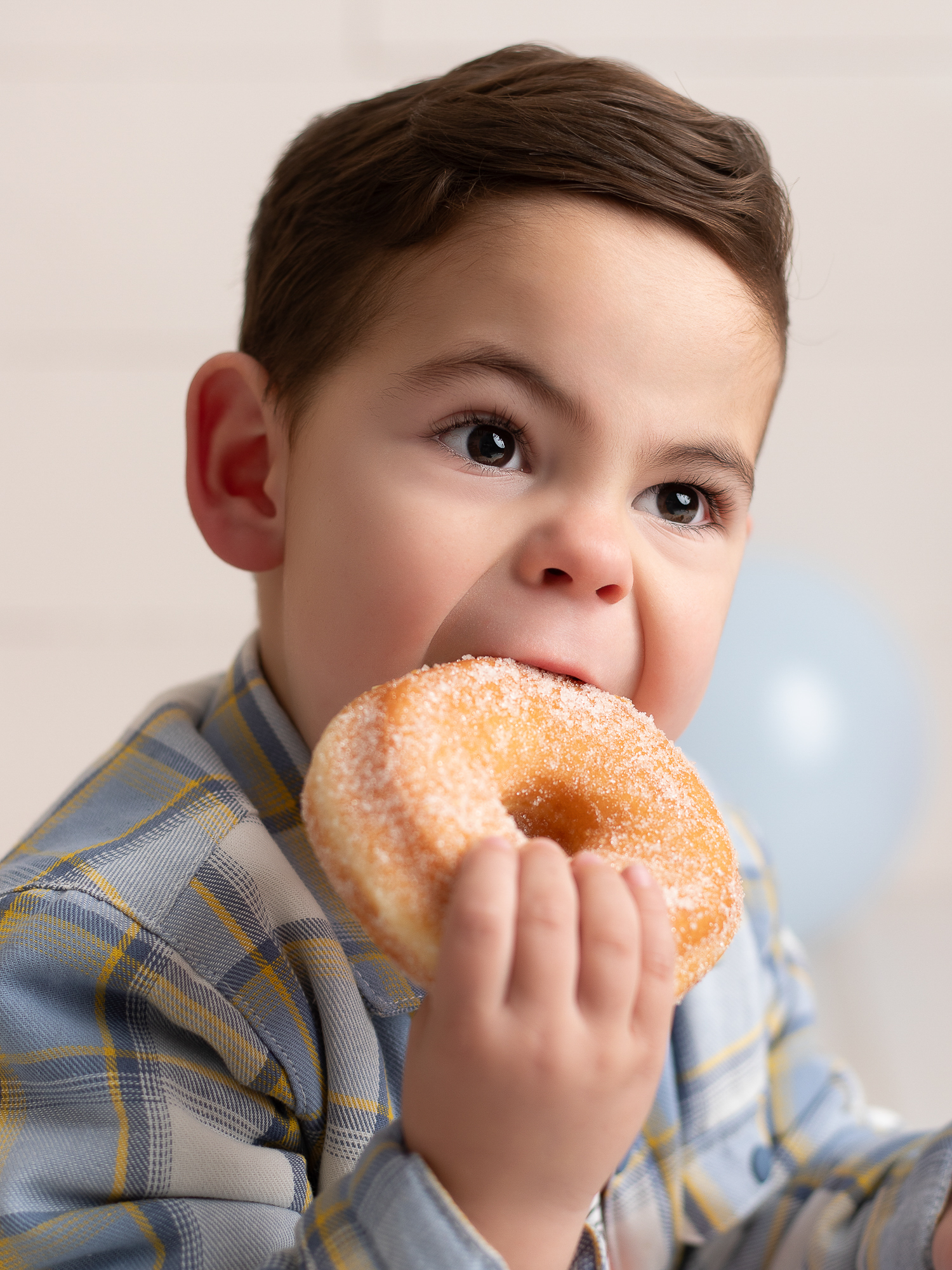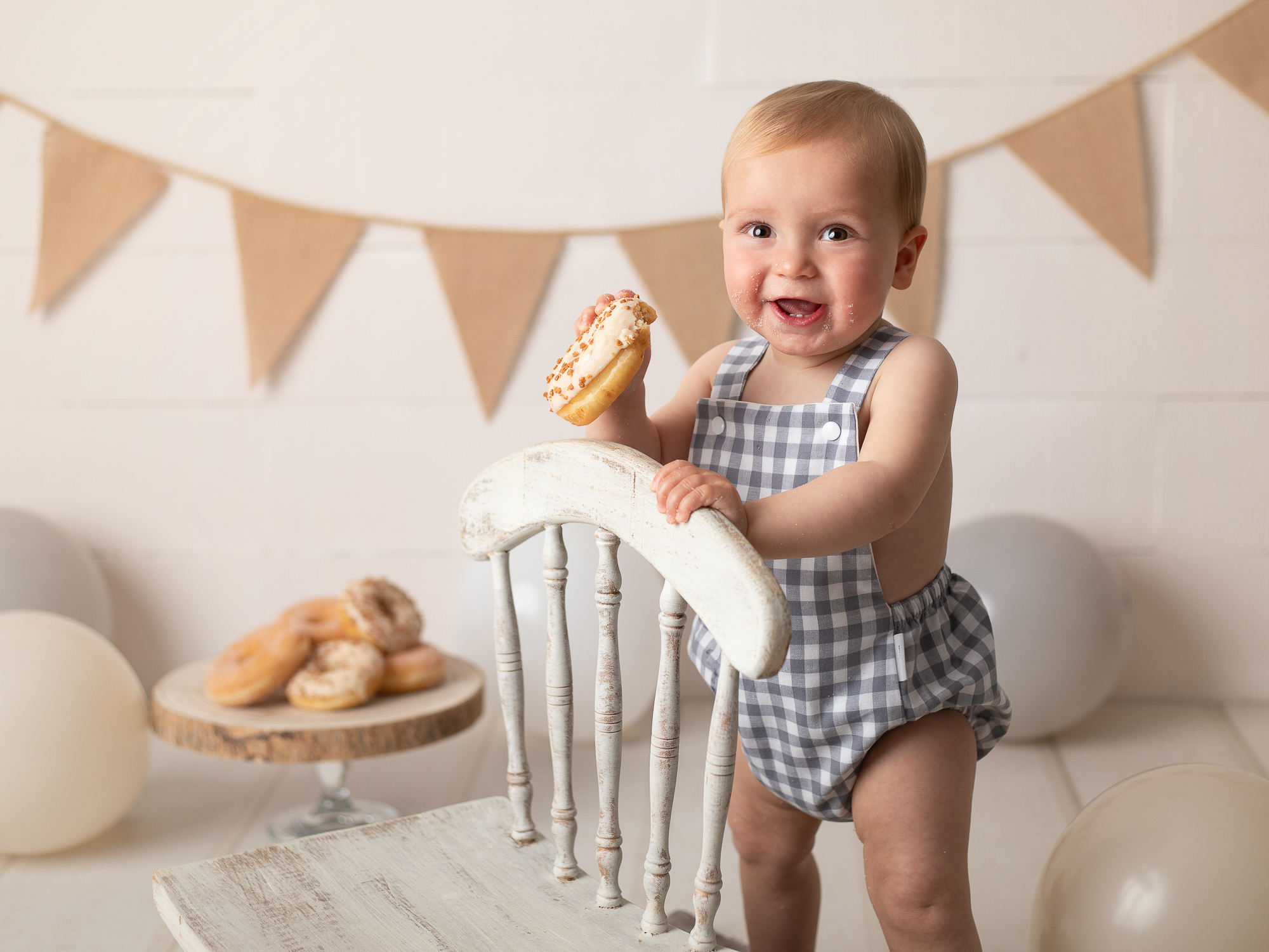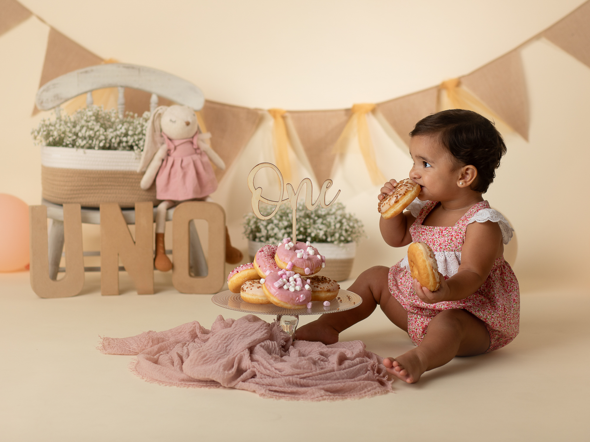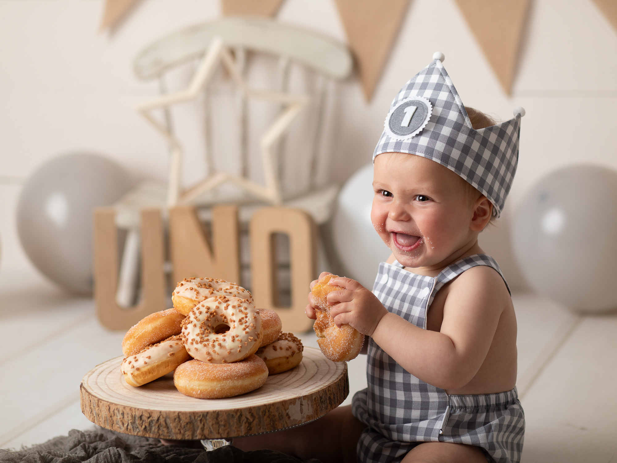 Durante la sesión, tu bebé podrá disfrutar de una deliciosa tarta o unos donuts, mientras juega, se mancha y se divierte. Este tipo de sesiones las puedes realizar desde su primer cumpleaños, no importa la edad que tenga, ¿a que niño no le gusta celebrar su cumple?